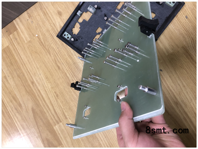 ,治具材质采用合成石,耐温300度不变形,上盖采用FR-4材质,所以接插件都使用弹性压点压住。