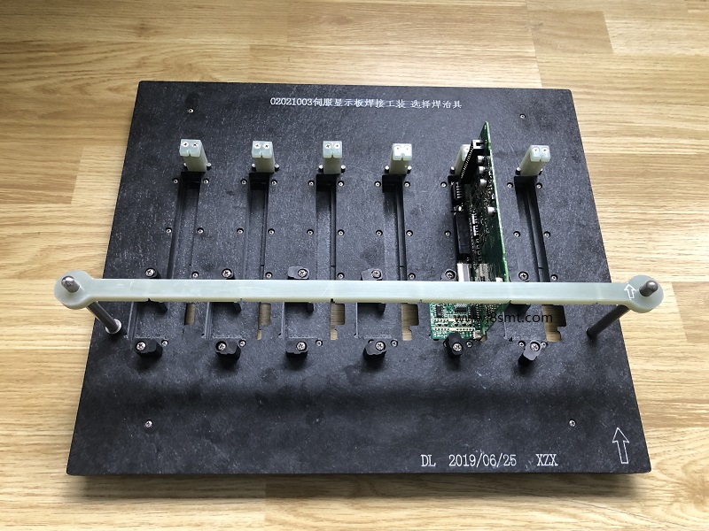 伺服显示板选择焊治具 这个板子波峰焊没办法焊接,手工焊质量,与效率都太低,所以客户选择使用德国爱莎的选择焊焊接,下图为配套选择焊治具的照片:...